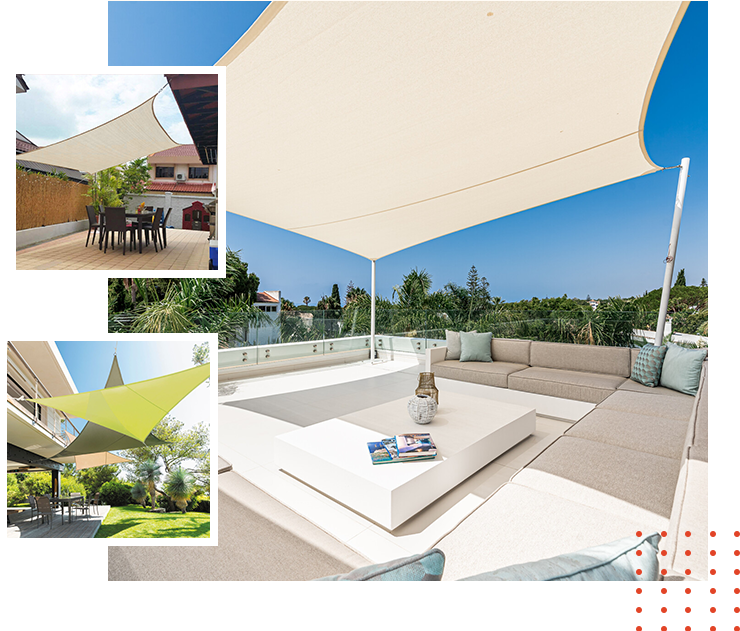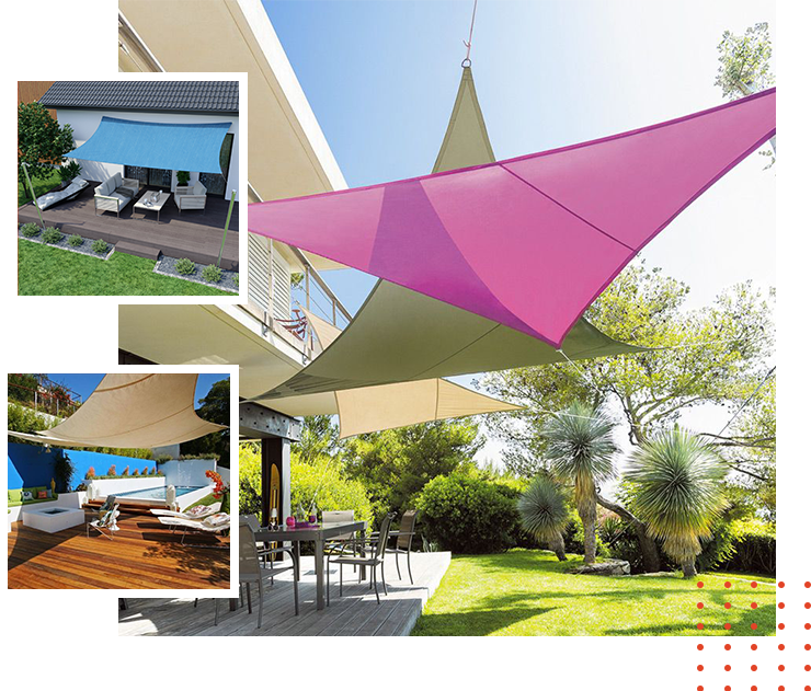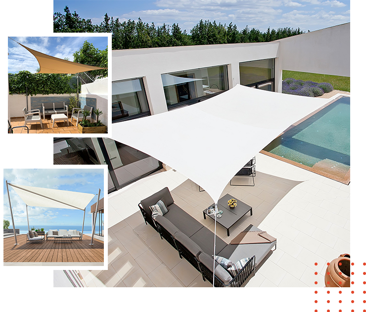 Avec un choix infini de formes, dimensions et hauteurs, nos créations s’adaptent à merveille au style de toute habitation : terrasse, balcon, jardin, piscine, entrée… Grâce à leur haut niveau de protection, leur performance thermique et leur rendu design, nos toiles compléteront votre maison en lui apportant un espace d’ombre rafraîchissant.